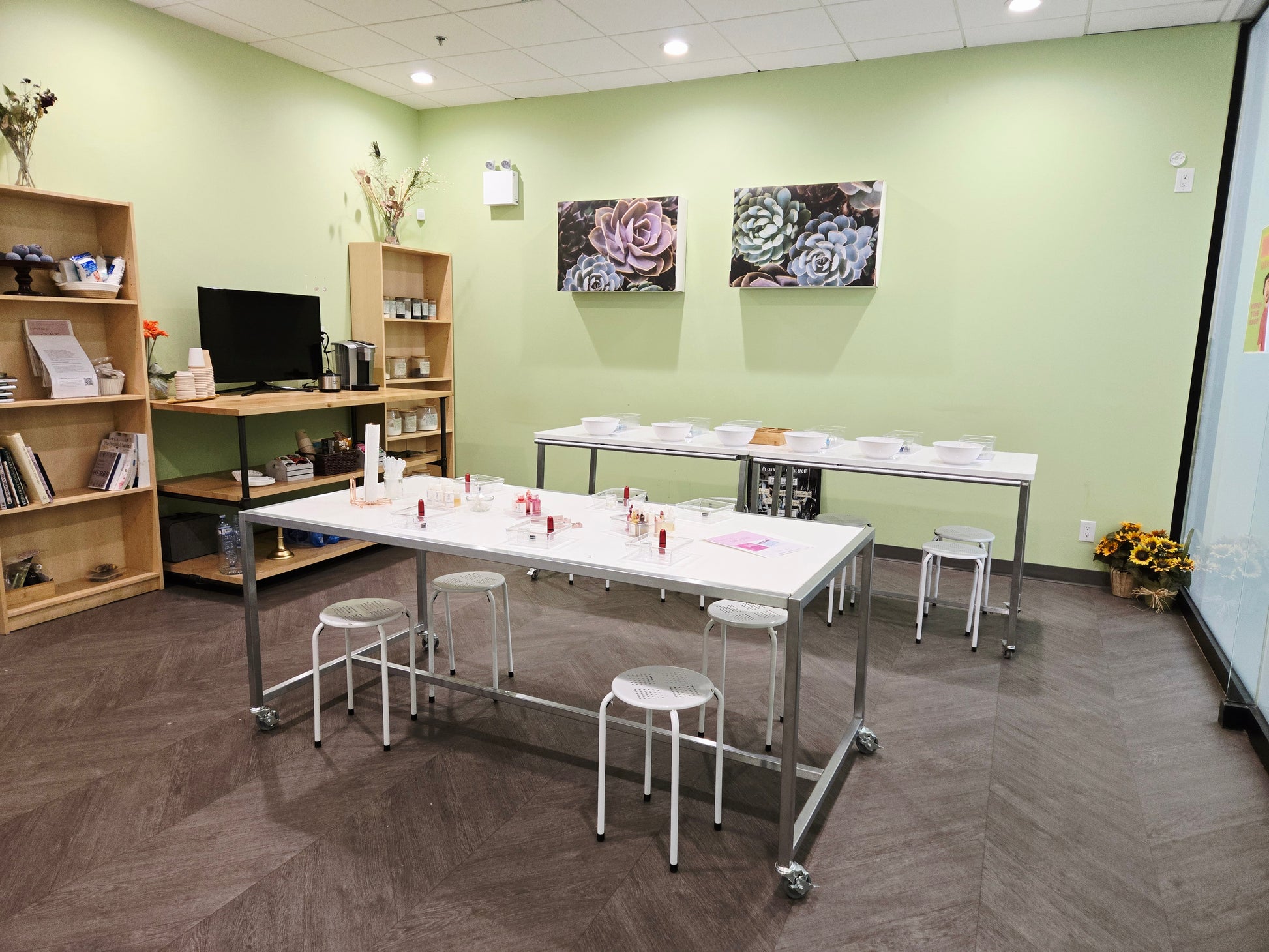 We use a cold process method and you get to take home soaps that you personally made!